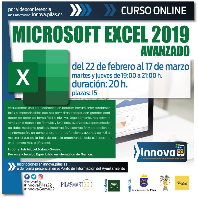 Microsoft Excel 2019. Avanzado, del 22 de febrero al 17 de marzo.