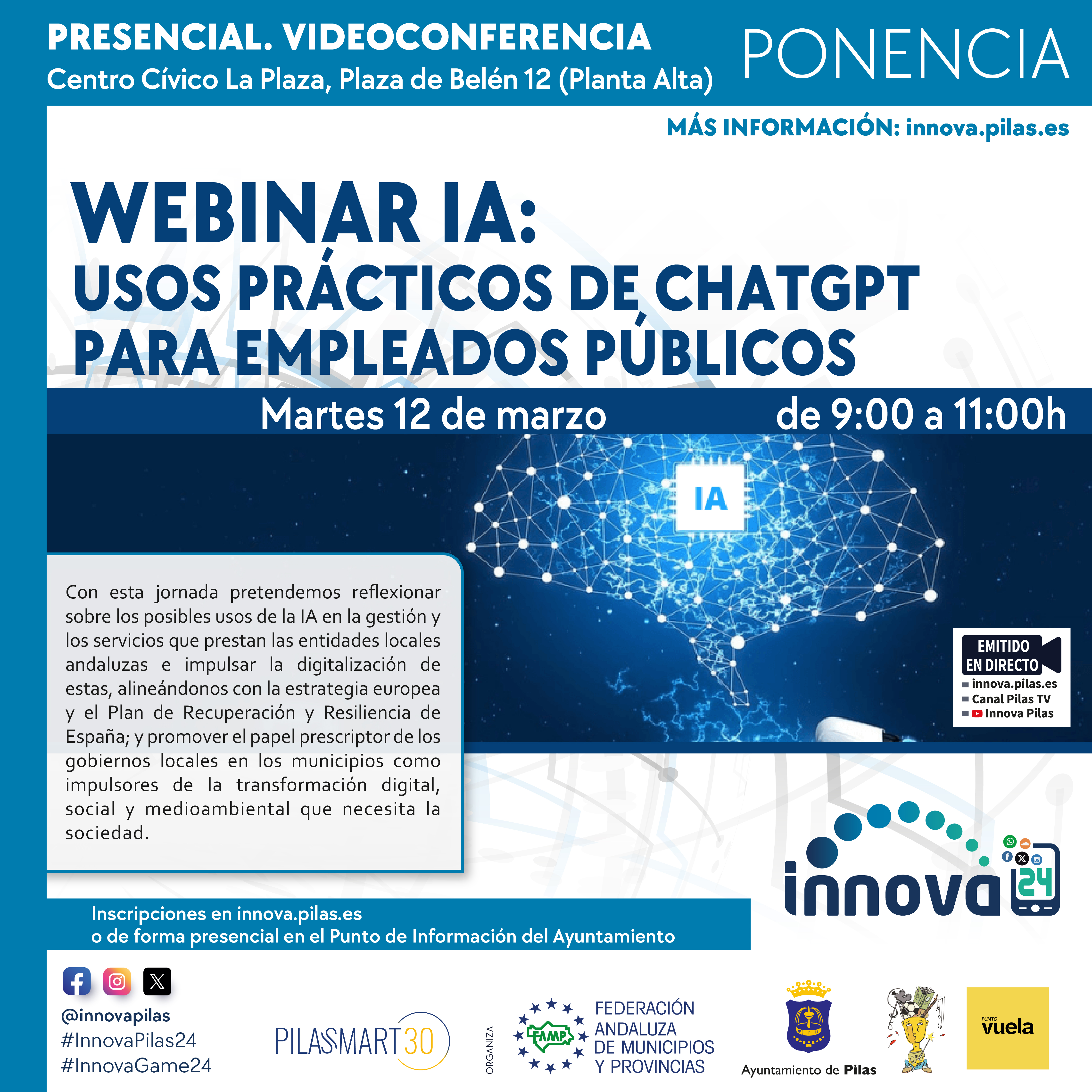 WEBINAR IA: USOS PRÁCTICOS DE CHATGPT PARA EMPLEADOS PÚBLICOS. Martes 12 de Marzo 2024.