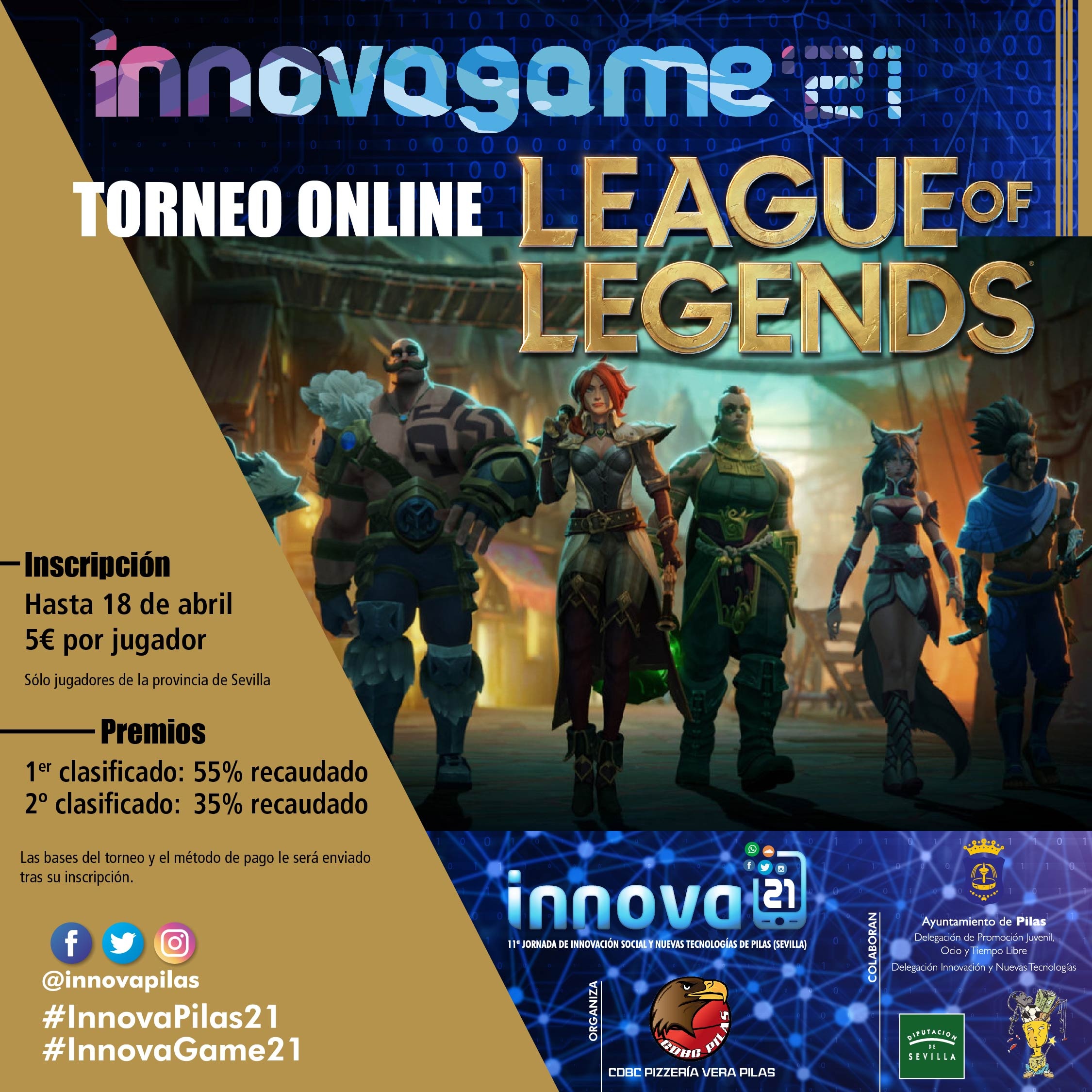 Esto nos lleva a realizar este TORNEO LEAGUE OF LEGENDS de forma VIRTUAL, excepto LA FASE FINAL (Semifinal y Final) que se realizará de forma presencial, de ahí que sólo se permitan participar JUGADORES DE LA PROVINCIA DE SEVILLA por las restricciones de movilidad que tenemos que cumplir.
